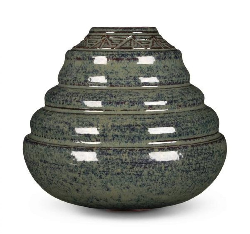 The peacock is a speckled active glaze reminiscent of high-fired glaze that cuts pleasantly with beautiful effects that can be achieved at lower temperatures. When the glaze is thicker, it forms soft green spots on a dark brown surface where it is thinner. This glaze is designed to allow the clay body to show through where the texture is and look significantly different on red wares and white wares.