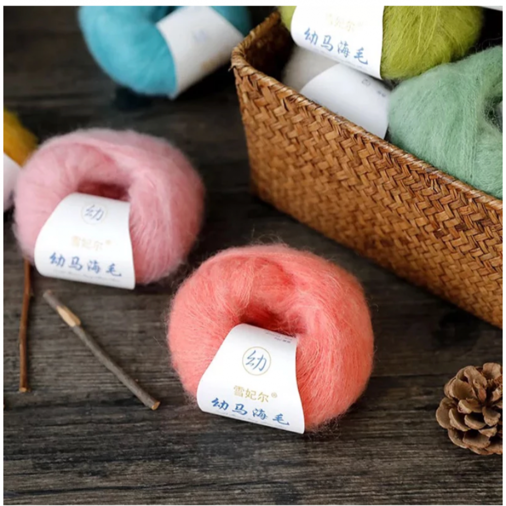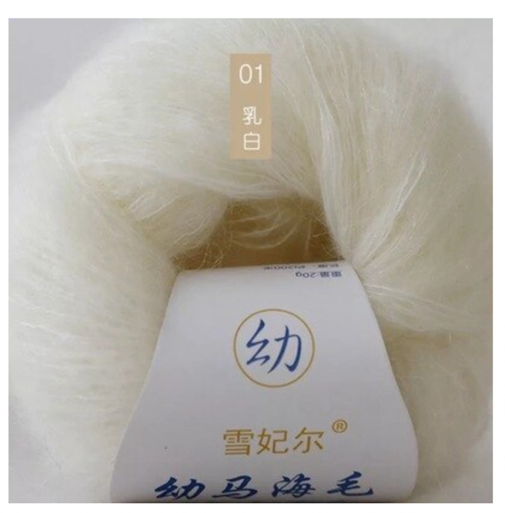 Product name: Little Filly Composition: 45% South African horse mohair 27% Merino wool 28% nylon Weight: 20g Length: 200cm approx